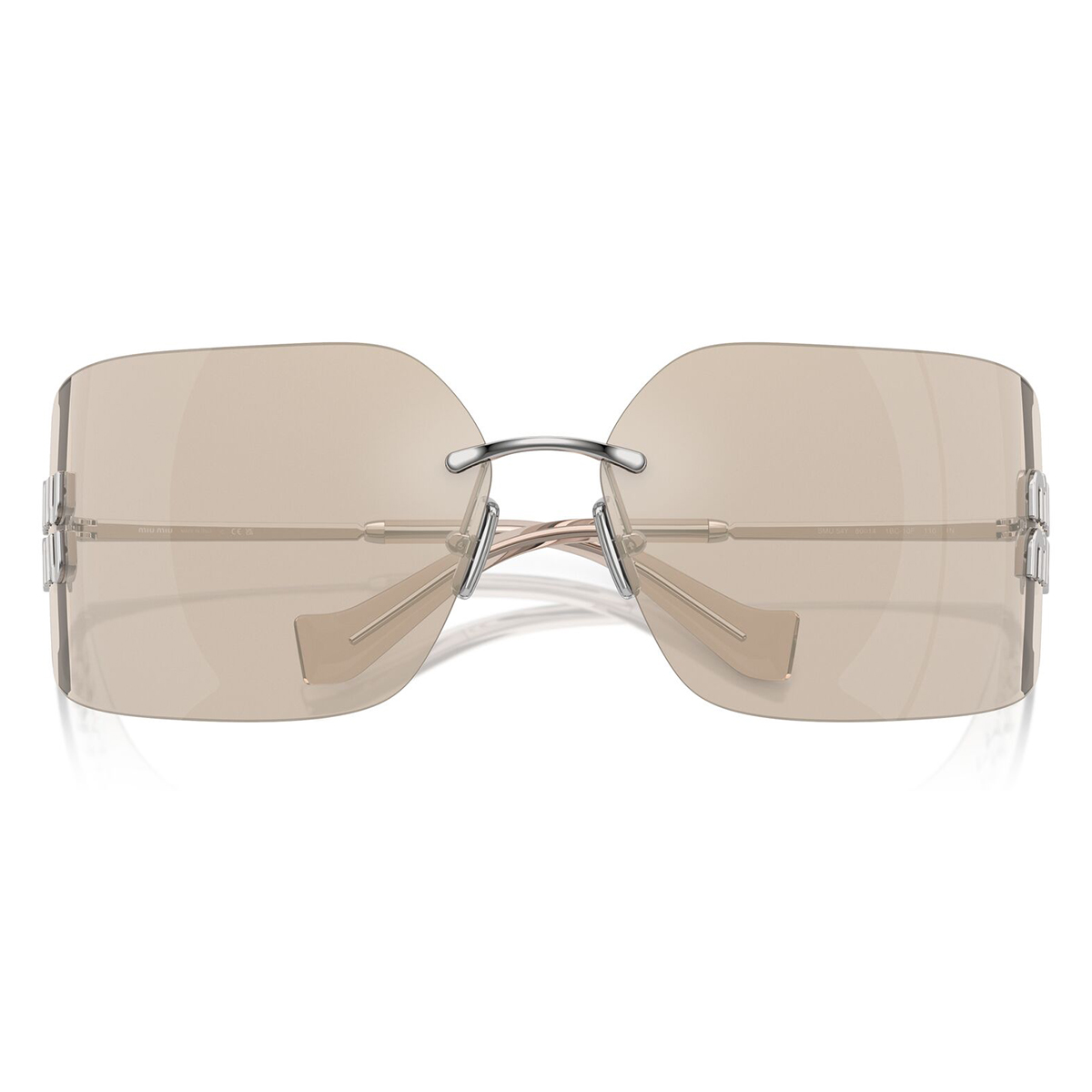 These wraparound sunglasses are presented in a silver frame and are made from premium metal. They are completed by brown with light ivory mirror lenses. This sunglass is especially designed with women in mind.